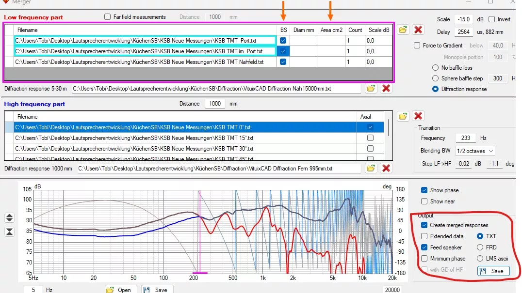 Die ersten beiden Probegehäuse wurde gebaut und unterschiedliche Treiberpositionen getestet und mit REW habe ich erste Messungen gemacht. Nach mehreren Messversuchen waren alle Winkel, Nah, Fern, und Impedanzmessungen gemacht. Dann musste ich mich mal in Vituix Cad einarbeiten. (irgendwann werde ich es verstehen