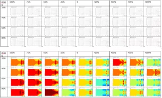 Die gleichmäßigste Abtrahlung ergibt sich, wenn der zwischenpunkt eher Richtung Hornmund gerichtet ist bei pL im Bereich 60-80% und bei moderater Verschiebung nach innen bei pL im Bereich -25% bis -50%.