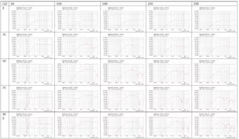 links: SPL bei 1W/1m in 700 Liter in 940 mm x 1240 mm-Schallwand in einem reflektionsarmen Messraum.
