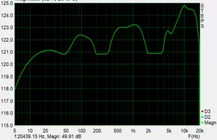 Es zeigen sich durch die kleine steife und leichte Membran bis 20 kHz keine erkennbaren Resonanzen.