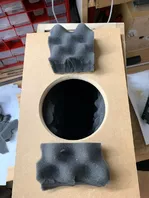 Da ich die Frequenzweiche natürlich apokalypsensicher eingeklebt hatte, musste ich den Boden herausfräsen (was eigentlich sogar Spaß gemacht hat) und einen neuen Boden herstellen. Hier besteht noch Optimierungspotential. Sobald es wieder etwas kühler geworden ist, werde ich mir eine kleine Fräsvorrichtung, ähnlich eines Frästisches, bauen und diese Optimierung angehen.